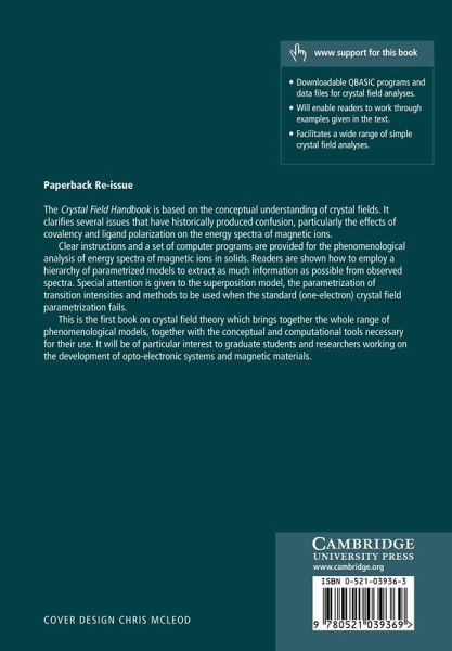 This book is based on the modern conceptual understanding of crystal fields. It provides readers with clear instructions and a set of computer programs for the phenomenological analysis of energy spectra of magnetic ions in solids. The text clarifies several issues that have historically produced confusion in this area, particularly the effects of covalency and ligand polarization on the energy spectra of magnetic ions. Readers are shown how to employ a hierarchy of parametrized models to extract as much information as possible from observed lanthanide and actinide spectra. This is the first book in the area of crystal field theory which describes all of the available phenomenological models, together with the conceptual and computational tools necessary for their use. It will be of particular interest to graduate students and researchers working in the development of opto-electronic systems and magnetic materials.