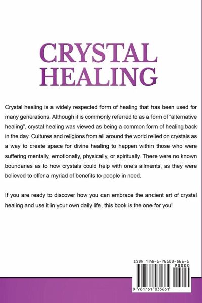 CRYSTAL HEALING ¿Crystal healing is a widely respected form of healing that has been used for many generations. Although it is commonly referred to as a form of "alternative healing", crystal healing was once viewed as a common form of healing in various places around the world. Cultures and religions from all around the world relied on crystals as a way to create space for divine healing to happen within those who were suffering mentally, emotionally, physically, or spiritually. There were no known boundaries as to how crystals could help with one's ailments, as they were believed to offer a myriad of benefits to people in need. If you are ready to discover how you can embrace the ancient art of crystal healing and use it in your own daily life, this book is the one for you! Here Is A Preview Of What You'll Learn About Inside... What Is Crystal Healing The History Of Crystal Healing The Different Healing Crystals How To Create A Crystal Set Healing Yourself With Crystals Healing Other With Crystals How To Take Care Of Your Crystals Much, Much More!