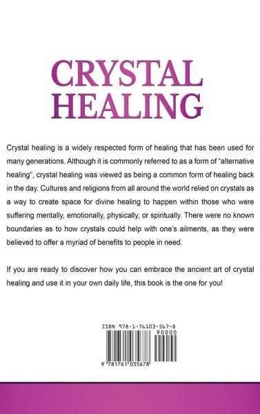 CRYSTAL HEALING ¿Crystal healing is a widely respected form of healing that has been used for many generations. Although it is commonly referred to as a form of "alternative healing", crystal healing was once viewed as a common form of healing in various places around the world. Cultures and religions from all around the world relied on crystals as a way to create space for divine healing to happen within those who were suffering mentally, emotionally, physically, or spiritually. There were no known boundaries as to how crystals could help with one's ailments, as they were believed to offer a myriad of benefits to people in need. If you are ready to discover how you can embrace the ancient art of crystal healing and use it in your own daily life, this book is the one for you! Here Is A Preview Of What You'll Learn About Inside... What Is Crystal Healing The History Of Crystal Healing The Different Healing Crystals How To Create A Crystal Set Healing Yourself With Crystals Healing Other With Crystals How To Take Care Of Your Crystals Much, Much More!
