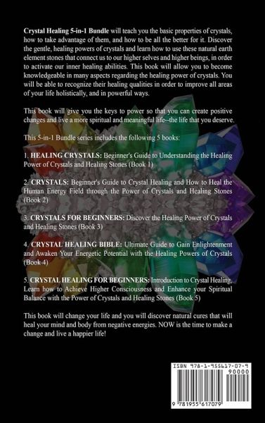 Crystal Healing will teach you the basic properties of crystals, how to take advantage of them, and how to be all the better for it. Discover the gentle, healing powers of crystals and learn how to use these natural earth element stones that connect us to our higher selves and higher beings, in order to activate our inner healing abilities. This book will allow you to become knowledgeable in many aspects regarding the healing power of crystals. You will be able to recognize their healing qualities in order to improve all areas of your life holistically, and in powerful ways... This book will give you the keys to power so that you can create positive changes and live a more spiritual and meaningful life--the life that you deserve... This five-in-one series includes the following 5 books: 1. HEALING CRYSTALS: Beginner's Guide to Understanding the Healing Power of Crystals and Healing Stones (Book 1) 2. CRYSTALS: Beginner's Guide to Crystal Healing and How to Heal the Human Energy Field through the Power of Crystals and Healing Stones (Book 2) 3. CRYSTALS FOR BEGINNERS: Discover the Healing Power of Crystals and Healing Stones (Book 3) 4. CRYSTAL HEALING BIBLE: Ultimate Guide to Gain Enlightenment and Awaken Your Energetic Potential with the Healing Powers of Crystals (Book 4) 5. CRYSTAL HEALING FOR BEGINNERS: Introduction to Crystal Healing, Learn how to Achieve Higher Consciousness and Enhance your Spiritual Balance with the Power of Crystals and Healing Stones (Book 5) In this book you'll learn: What exactly are Crystals Basics of Crystal Healing How to tap into Crystal Energy Over 200+ Crystals You Need to Know Chakra Healing & Chakra Balancing Incredible Benefits of Crystal Healing How to make a Crystal Grid How to start your own Crystal Collection Basics of Chakra Connections and Crystals The Fundamentals of Healing with Crystals Tips on finding the right Crystals for you How to Harness the Power of Crystals You'll also learn: The history, properties, meaning, and purpose of popular healing crystals Crystal grids at home, at work, on the go, wherever you are Colors of crystals and how they relate to corresponding chakras Chakra balancing using crystals for everyday centeredness Aura clearing, cleansing, and protecting using crystals Using crystals in relaxation, meditation, healing, and positive affirmation Crystals as powerful healers - how they aid in specific ailments such as depression, exhaustion, grief, joint pain, stress and more Crystals for balancing the body, mind, and spirit holistically Crystals in Reiki - positive intent, connecting to higher self and Divinity for the greater good Crystal prescriptions Sacred Geometry How astrology and crystal healing correlate And so much more! This book will change your life and you will discover natural cures that will heal your mind and body from negative energies. NOW is the time to make a change and live a happier life! Grab your copy of Crystal Healing today!