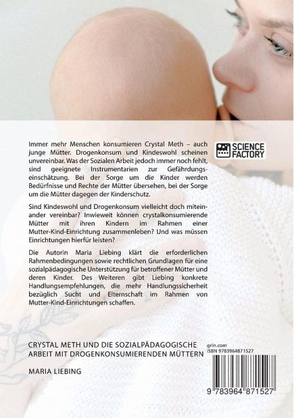 Immer mehr Menschen konsumieren Crystal Meth - auch junge Mütter. Drogenkonsum und Kindeswohl scheinen unvereinbar. Was der Sozialen Arbeit jedoch immer noch fehlt, sind geeignete Instrumentarien zur Gefährdungseinschätzung. Bei der Sorge um die Kinder werden Bedürfnisse und Rechte der Mütter übersehen, bei der Sorge um die Mütter dagegen der Kinderschutz.Sind Kindeswohl und Drogenkonsum vielleicht doch miteinander vereinbar? Inwieweit können crystalkonsumierende Mütter mit ihren Kindern im Rahmen einer Mutter-Kind-Einrichtung zusammenleben? Und was müssen Einrichtungen hierfür leisten?Die Autorin Maria Liebing klärt die erforderlichen Rahmenbedingungen sowie rechtlichen Grundlagen für eine sozialpädagogische Unterstützung für betroffener Mütter und deren Kinder. Des Weiteren gibt Liebing konkrete Handlungsempfehlungen, die mehr Handlungssicherheit bezüglich Sucht und Elternschaft im Rahmen von Mutter-Kind-Einrichtungen schaffen.Aus dem Inhalt:- Suchthilfe;- § 19 SGB VIII;- Jugendschutzgesetz;- Betäubungsmittelgesetz;- Kindeswohlgefährdung