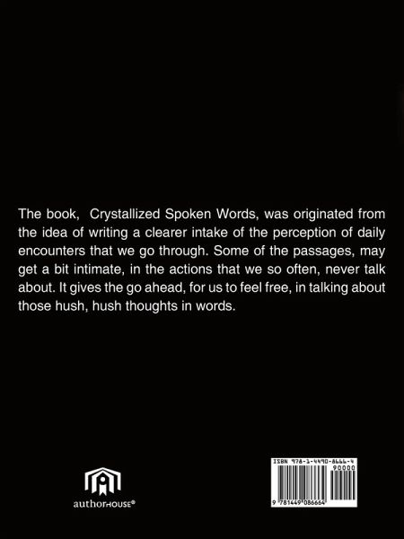 As you read this book, you will be indulged in the persona, of one's imaginations as well as motivating one to venture further than before. There are various passages, that leave one feeling quite refreshed. Others giving one the freedom to express anguishes felt within the depths of the inner soul. In conclusion, the book will dare to speak of some of life's do me's and down points that have been left unsettled in its own rarity .