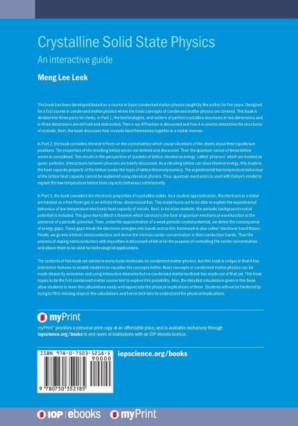 This book covers the standard scope of a basic condensed matter course with two unique features to aid students: 1) explicit calculational details are provided and; 2) animations are interspersed throughout the book to aid the visualization of more abstract concepts.