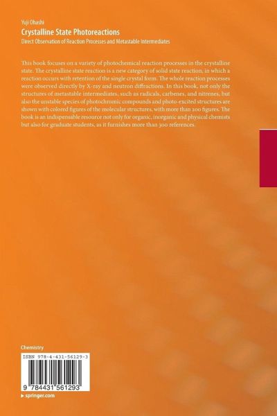 This book focuses on a variety of photochemical reaction processes in the crystalline state. The crystalline state reaction is a new category of solid state reaction, in which a reaction occurs with retention of the single crystal form. The whole reaction processes were observed directly by X-ray and neutron diffractions. In this book, not only the structures of metastable intermediates, such as radicals, carbenes, and nitrenes, but also the unstable species of photochromic compounds and photo-excited structures are shown with colored figures of the molecular structures, with more than 200 figures. The book is an indispensable resource not only for organic, inorganic and physical chemists but also for graduate students, as it furnishes more than 300 references.