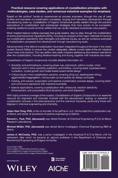 Based on the authors' hands-on experiences as process engineers, through the use of case studies and examples of crystallization processes, ranging from laboratory development through manufacturing scale-up, Crystallization of Organic Compounds guides readers through the practical applications of crystallization and emphasizes strategies that have proven to be successful, enabling readers to avoid common pitfalls that can render standard procedures unsuccessful.