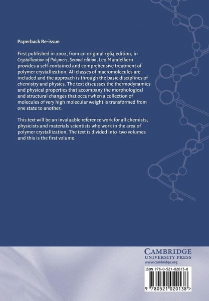 First published in 2002, from an original 1964 edition, in the Crystallization of Polymers, 2nd edition Leo Mandelkern provides a self-contained treatment of polymer crystallization. All classes of macromolecules are included and the approach is through the basic disciplines of chemistry and physics. The book discusses the thermodynamics and physical properties that accompany the morphological and structural changes that occur when a collection of molecules of very high molecular weight are transformed from one state to another. Volume 1 is a presentation of the equilibrium concepts that serve as a basis for the subsequent volumes. In this volume the author shows that knowledge of the equilibrium requirements is vital to understanding all aspects of the polymer crystallization process, and the final state that eventually evolves. This book will be an invaluable reference work for all chemists, physicists and materials scientists who work in the area of polymer crystallization.