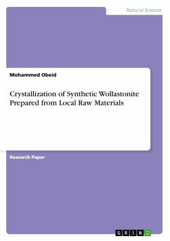 Research Paper (postgraduate) from the year 2014 in the subject Chemistry - Materials Chemistry, , language: English, abstract: Wollastonite (CaSiO3) has been synthesized by the solid state reaction method at a temperature range of 1050-1250¿ from local raw materials, e.g. silica sand and limestone as well as pure chemicals in the form of carbonate and quartz with and without B2O3 adding as a mineralized. The resulting products are investigated employing XRD and SEM techniques. ß-wollastonite was obtained at 1050¿ and transformed to pseudowollastonite (¿- CaSiO3) at 1150¿ due to the presence of B2O3. While the pure chemicals failed to give wollastonite at this range of temperature 1050-1150¿. As the temperature increased up to 1400¿, both experimental and standard samples have been melted.