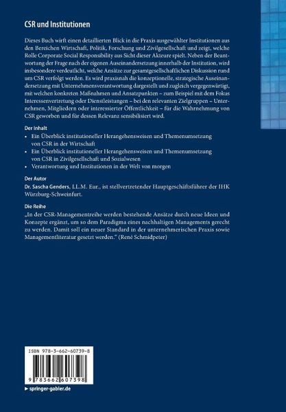Dieses Buch zeigt, welche Rolle Corporate Social Responsibility aus Sicht dieser Akteure spielt. Neben der Beantwortung der Frage nach der eigenen Auseinandersetzung innerhalb der Institution, wird insbesondere verdeutlicht, welche Ansätze zur gesamtgesellschaftlichen Diskussion rund um CSR verfolgt werden. Es wird praxisnah die konzeptionelle, strategische Auseinandersetzung mit Unternehmensverantwortung dargestellt und zugleich vergegenwärtigt, mit welchen konkreten Maßnahmen und Ansatzpunkten - zum Beispiel mit dem Fokus Interessenvertretung oder Dienstleistungen - bei den relevanten Zielgruppen - Unternehmen, Mitgliedern oder interessierter Öffentlichkeit - für die Wahrnehmung von CSR geworben und für dessen Relevanz sensibilisiert wird.