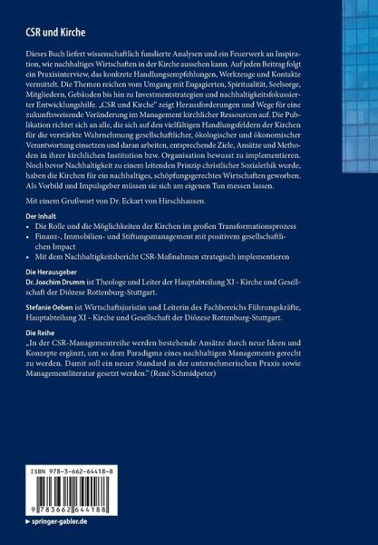 Dieses Buch liefert wissenschaftlich fundierte Analysen und ein Feuerwerk an Inspiration, wie nachhaltiges Wirtschaften in der Kirche aussehen kann. Auf jeden Beitrag folgt ein Praxisinterview, das konkrete Handlungsempfehlungen, Werkzeuge und Kontakte vermittelt. Die Themen reichen vom Umgang mit Engagierten, Spiritualität, Seelsorge, Mitgliedern, Gebäuden bis hin zu Investmentstrategien und nachhaltigkeitsfokussierter Entwicklungshilfe. "CSR und Kirche" zeigt Herausforderungen und Wege für eine zukunftsweisende Veränderung im Management kirchlicher Ressourcen auf. Die Publikation richtet sich an alle, die sich auf den vielfältigen Handlungsfeldern der Kirchen für die verstärkte Wahrnehmung gesellschaftlicher, ökologischer und ökonomischer Verantwortung einsetzen und daran arbeiten, entsprechende Ziele, Ansätze und Methoden in ihrer kirchlichen Institution bzw. Organisation bewusst zu implementieren. Noch bevor Nachhaltigkeit zu einem leitenden Prinzip christlicher Sozialethik wurde, haben die Kirchen für ein nachhaltiges, schöpfungsgerechtes Wirtschaften geworben. Als Vorbild und Impulsgeber müssen sie sich am eigenen Tun messen lassen.