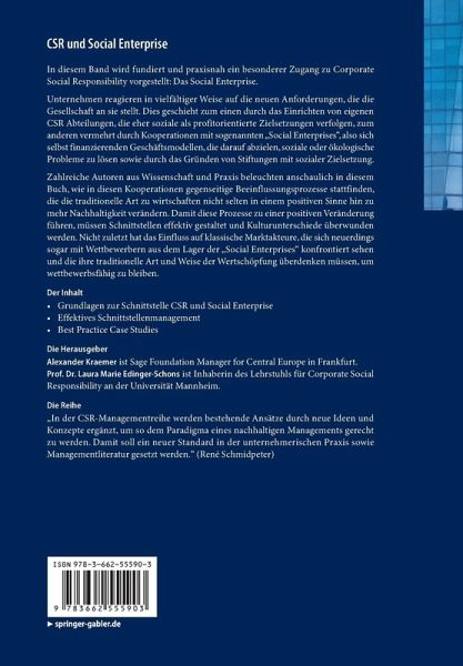 In diesem Band "CSR und Social Enterprise - Beeinflussungsprozesse und effektives Schnittstellenmanagement" stellen die Herausgeber Alexander Kraemer und Laura Marie Edinger-Schons fundiert und praxisnah einen besonderen Zugang zu Corporate Social Responsibility (CSR) vor: Das Social Enterprise.
