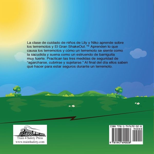 2018 Bronze Medal Readers' Favorite Children's Social Issues Mom's Choice Award The Spanish Language Edition of Tummy Rumble Quake La clase de cuidado de niños Lily y Niko está practicando para El Gran ShakeOut.¿ Aprenden que El Gran ShakeOut¿ ayuda a prepararse para un terremoto. También aprenden los fundamentos de lo que provoca un terremoto y cómo causa las cosas caer y romper. El terremoto puede sonar como un estruendo de barriguita muy fuerte. Ellostambién aprenden a donde deberían ir y que deberían hacer (agacharse, cubrirse y sujetarse)para quedarse seguros dentro de los edificios, afuera, y en un auto. Al final del día se sienten cómodos reconociendo qué es un terremoto y cómo estar seguros si ocurre. Leyendo este libro es una gran manera para los padres, proveedores de cuidado infantil, y otros cuidadores infantiles hablar con niñitos y niños en edad preescolar sobre la seguridad durante un terremoto en una forma que no de miedo. Los niños pueden relacionar fácilmente con estos personajes y esta historia les da a los niños las herramientas y la información que necesitan para mantenerse salvos y preparados si un terremoto ocurre.