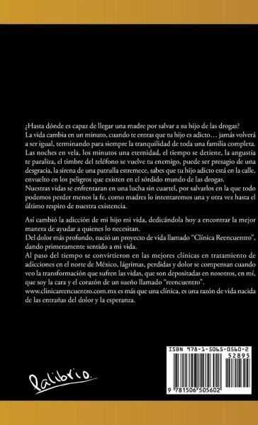 ¿Hasta dónde es capaz de llegar una madre por salvar a su hijo de las drogas? La vida cambia en un minuto, cuando te entras que tu hijo es adicto… jamás volverá a ser igual, terminando para siempre la tranquilidad de toda una familia completa. Las noches en vela, los minutos una eternidad, el tiempo se detiene, la angustia te paraliza, el timbre del teléfono se vuelve tu enemigo, puede ser presagio de una desgracia, la sirena de una patrulla estremece, sabes que tu hijo adicto está en la calle, envuelto en los peligros que existen en el sórdido mundo de las drogas. Nuestras vidas se enfrentaran en una lucha sin cuartel, por salvarlos en la que todo podemos perder menos la fe, como madres lo intentaremos una y otra vez hasta el último respiro de nuestra existencia. Así cambió la adicción de mi hijo mi vida, dedicándola hoy a encontrar la mejor manera de ayudar a quienes lo necesitan. Del dolor más profundo, nació un proyecto de vida llamado "Clínica Reencuentro", dando primeramente sentido a mi vida. Al paso del tiempo se convirtieron en las mejores clínicas en tratamiento de adicciones en el norte de México, lágrimas, perdidas y dolor se compensan cuando veo la transformación que sufren las vidas, que son depositadas en nosotros, en mí, que soy la cara y el corazón de un sueño llamado "reencuentro". www.clinicareencuentro.com.mx es más que una clínica, es una razón de vida nacida de las entrañas del dolor y la esperanza.