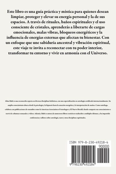 Este libro es una guía práctica y mística para quienes desean limpiar, proteger y elevar su energía personal y la de sus espacios. A través de rituales, baños espirituales y el uso consciente de cristales, aprenderás a liberarte de cargas emocionales, malas vibras, bloqueos energéticos y la influencia de energías externas que afectan tu bienestar. Con un enfoque que une sabiduría ancestral y vibración espiritual, este viaje te invita a reconectar con tu poder interior, transformar tu entorno y vivir en armonía con el Universo.