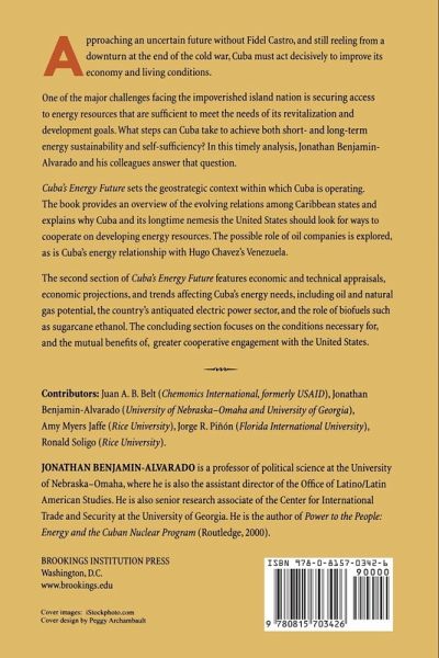"Examines what Cuba must do to ensure energy sustainability and self-sufficiency in order to secure its future, including advancing relationships with its neighbors, and discusses ways the island nation might seek greater cooperation with the United States in these endeavors"--Provided by publisher.