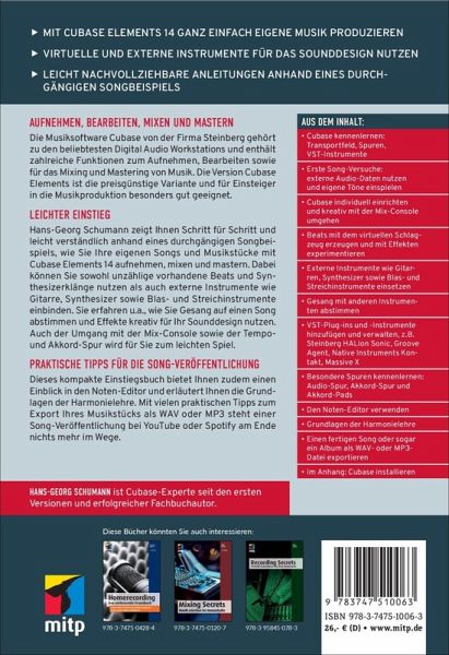 Das Buch ist für die Versionen Cubase Elements 9 bis 14 (und höher) geeignet.