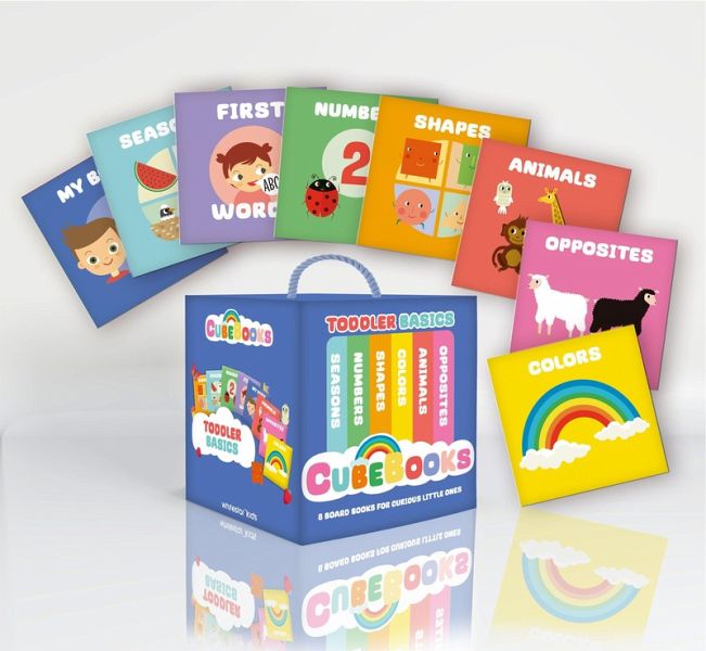Eight colorful first-concept board books inside an attractive portable box that children can take anywhere! The adorable books in the CubeBooks box set provide an introduction to the first concepts of colors, numbers, shapes, opposites, seasons, animals, the human body, and words. The concepts grow in complexity and level of association, so toddlers can use these books as they grow too. This is the ultimate set for learning at home or on the go!