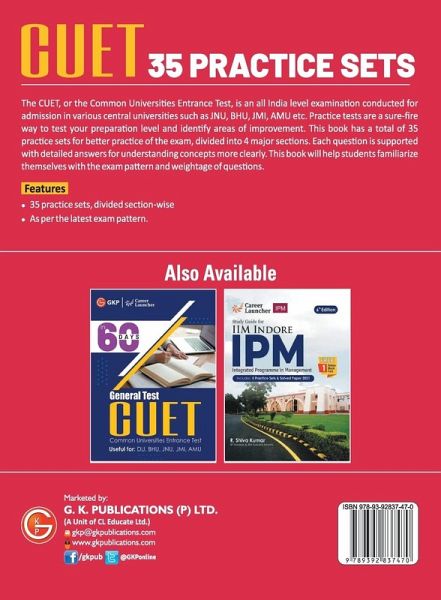 The CUCET, or the Central University Common Entrance Test, is an all India level examination conducted for admission in various central universities such as JNU, BHU, JMI, AMU etc. Practice tests are a sure-fire way to test your preparation level and identify areas of improvement. This book has a total of 35 practice sets for better practice of the exam, divided into 4 major sections. Each question is supported with detailed answers for understanding concepts more clearly. This book will help students familiarize themselves with the exam pattern and weightage of questions. Features: 1. 35 practice sets, divided section-wise 2. As per the latest exam pattern.