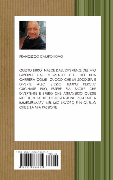 questo libro nasce dal mio lavoro dal momento che ho una carriera come cuoco che mi soddisfa e diverte allo stesso tempo.Il mio intento è quello di dimostrare che con la cucina ci si può anche divertire e spero che con queste ricette,di facile comprensione riusciate ad immedesimarvi nel mio lavoro e in quella che è la mia passione.