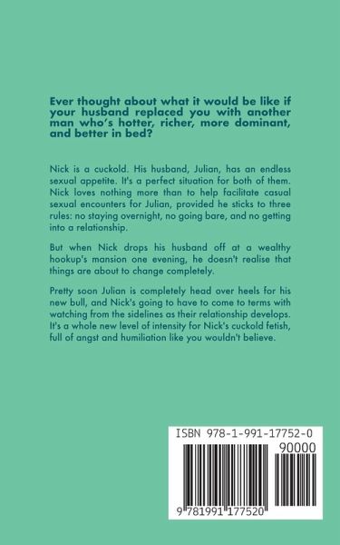 Ever thought about what it would be like if your husband replaced you with another man who's hotter, richer, more dominant, and better in bed? Nick is a cuckold. His husband, Julian, has an endless sexual appetite. It's a perfect situation for both of them. Nick loves nothing more than to help facilitate casual sexual encounters for Julian, provided he sticks to three rules: no staying overnight, no going bare, and no getting into a relationship. But when Nick drops his husband off at a wealthy hookup's mansion one evening, he doesn't realise that things are about to change completely. Pretty soon Julian is completely head over heels for his new bull, and Nick's going to have to come to terms with watching from the sidelines as their relationship develops. It's a whole new level of intensity for Nick's cuckold fetish, full of angst and humiliation like you wouldn't believe.