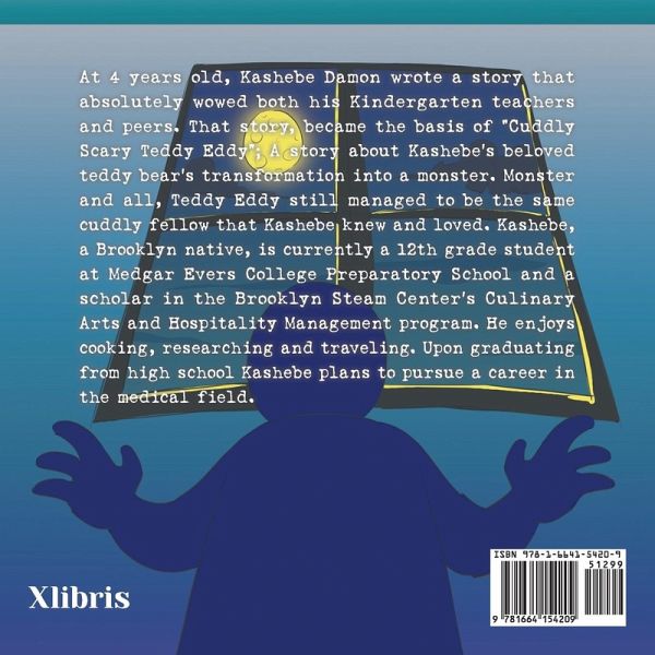At 4 years old, Kashebe Damon wrote a story that absolutely wowed both his Kindergarten teachers and peers. That story, became the basis of "Cuddly Scary Teddy Eddy"; A story about Kashebe's beloved teddy bear's transformation into a monster. Monster and all, Teddy Eddy still managed to be the same cuddly fellow that Kashebe knew and loved. Kashebe, a Brooklyn native, is currently a 12th grade student at Medgar Evers College Preparatory School. In his extracurricular time, he is also a scholar in the Brooklyn Steam Center's Culinary Arts and Hospitality Management program. He enjoys cooking, researching and traveling. Upon graduating from high school Kashebe plans to pursue a career in the medical field.