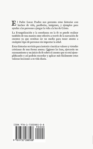 El Padre Lucas Prados nos presenta estas historias con hechos de vida, parábolas, imágenes, y ejemplos para ayudar a las personas a juzgar la vida a la luz de Cristo. La Evangelización y la enseñanza en la fe se puede realizar también de una manera muy efectiva a través de la narración de cuentos ya que resultan ser un medio para tener atento a cualquier tipo de personas sin importar la edad. Estas historias servirán para instruir e inculcar valores y virtudes cristianas de una forma amena. Quienes las lean, ejercerán un razonamiento y un juicio de fe sobre el cuento que se está ejemplificando y así podrán recordar y aplicar más fácilmente estas valiosas lecciones a su vida diaria.