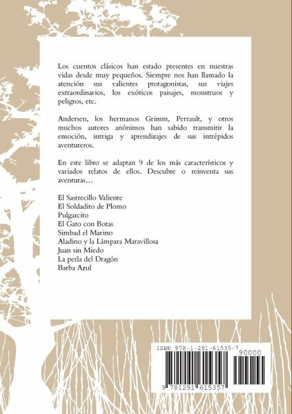 Los cuentos clásicos han estado presentes en nuestras vidas desde muy pequeños. Siempre nos han llamado la atención sus valientes protagonistas, sus viajes extraordinarios, los exóticos paisajes, monstruos y peligros, etc. Andersen, los hermanos Grimm, Perrault, y otros muchos autores anónimos han sabido transmitir la emoción, intriga y aprendizajes de sus intrépidos aventureros. En este libro se adaptan 9 de los más característicos y variados relatos de ellos. Descubre o reinventa sus aventuras... El Sastrecillo Valiente El Soldadito de Plomo Pulgarcito El Gato con Botas Simbad el Marino Aladino y la Lámpara Maravillosa Juan sin Miedo La perla del Dragón Barba Azul