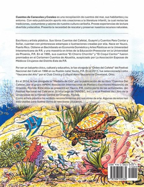 Cuentos de Caracoles y Corales es una recopilación de cuentos del mar, sus habitantes y su entorno. Con esta publicación aporto mis creaciones a la literatura infantil, la cual revisa las tradiciones, costumbres y valores de nuestra cultura caribeña. Provee experiencias de lectura divertida y educativa. Presenta la necesidad de rescatar y preservar nuestros recursos naturales.