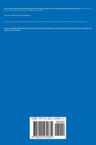 ¿Busca un libro entretenido para estimular la fantasía y la calma de su hijo, lleno de cuentos de hadas y personajes no humanos? Si la respuesta a estas preguntas es afirmativa, puede que haya encontrado la solución perfecta. ¿Desea que su hijo se duerma rápidamente? Esta colección representa una excelente lectura si buscas un libro muy entretenido para niños lleno de hadas, animales, princesa, brujas, extraterrestres, etc. Tras años de estudios y dedicación, hemos lanzado este libro de cuentos dedicado a los niños para estimular la fantasía y la calma. No esperes más, ¡compra tu libro hoy mismo!