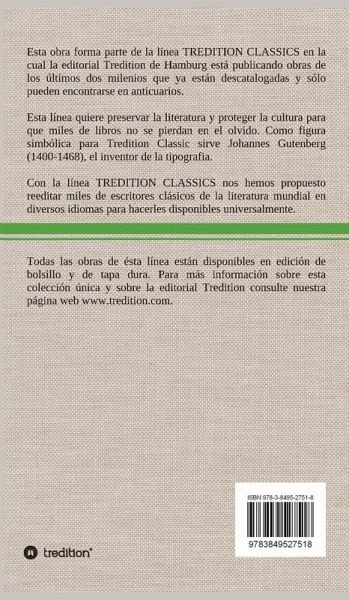 Esta obra (libro de tapa dura) forma parte de la línea TREDITION CLASSICS en la cual la editorial tredition de Hamburgo está publicando obras de los últimos dos milenios que ya están descatalogadas y sólo pueden encontrarse en anticuarios. Esta línea quiere preservar la literatura y proteger la cultura para que miles de libros no se pierdan en el olvido. Con la línea TREDITION CLASSICS nos hemos propuesto reeditar miles de escritores clásicos de la literatura mundial en diversos idiomas para hacerles disponibles universalmente.