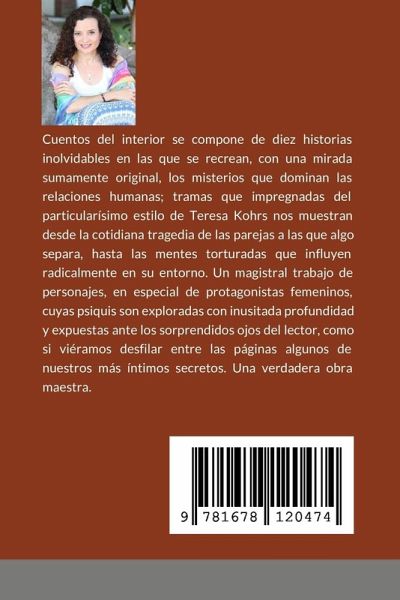 Cuentos del interior se compone de diez historias inolvidables en las que se recrean, con una mirada sumamente original, los misterios que dominan las relaciones humanas; tramas que impregnadas del particularísimo estilo de Teresa Kohrs nos muestran desde la cotidiana tragedia de las parejas a las que algo separa, hasta las mentes torturadas que influyen radicalmente en su entorno. Un magistral trabajo de personajes, en especial de protagonistas femeninos, cuyas psiquis son exploradas con inusitada profundidad y expuestas ante los sorprendidos ojos del lector, como si viéramos desfilar entre las páginas algunos de nuestros más íntimos secretos. Una verdadera obra maestra.