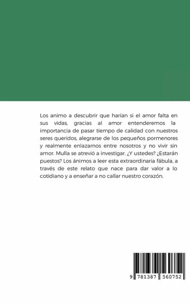 Los animo a descubrir que harían si el amor falta en sus vidas, gracias al amor entenderemos la importancia de pasar tiempo de calidad con nuestros seres queridos, alegrarse de los pequeños pormenores y realmente enlazarnos entre nosotros y no vivir sin amor. Mulla se atrevió a investigar. ¿Y ustedes? ¿Estarán puestos? Los ánimos a leer esta extraordinaria fábula, a través de este relato que nace para dar valor a lo cotidiano y a enseñar a no callar nuestro corazón.