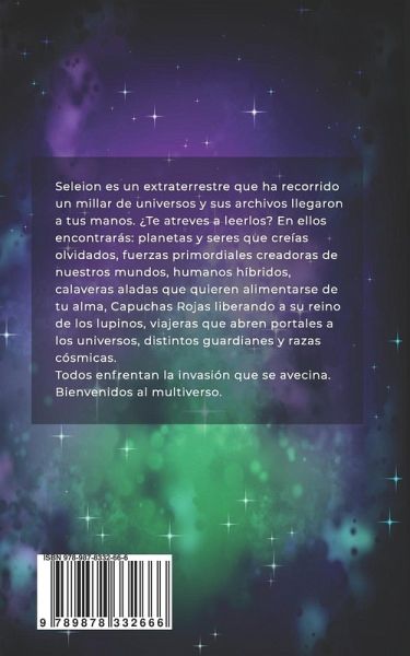 Seleion es un extraterrestre que ha recorrido un millar de universos y sus archivos llegaron a tus manos. ¿Te atreves a leerlos? En ellos encontrarás: planetas y seres que creías olvidados, fuerzas primordiales creadoras de nuestros mundos, humanos híbridos, calaveras aladas que quieren alimentarse de tu alma, Capuchas Rojas liberando a su reino de los lupinos, viajeras que abren portales a los universos, distintos guardianes y razas cósmicas. Todos enfrentan la invasión que se avecina. Bienvenidos al multiverso.