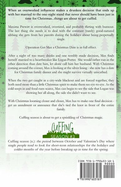When an overworked influencer makes a drunken decision that ends up with her married to the one night stand that never-should-have-been just in time for Christmas...things are about to get cuffed. Maxima Prewitt is overworked, overtired, and probably flirting with burnout. The last thing she needs is to deal with the constant (rarely) good-natured ribbing she gets from her parents during the holidays about being perpetually single. Operation Get Max a Christmas Date is in full effect. After a night of too many drinks and one terribly made decision, Max finds herself married to a heartbreaker like Logan Porter. She would rather run in the other direction than date him, let alone call him her husband. With Christmas coming around the corner, Max is looking at the silver lining - she now has a date for Christmas family dinner and she might survive virtually unscathed. When the two get caught in a city-wide blackout and are forced together, they both need more than a little Christmas spirit to make them see eye-to-eye. As the cold seeps in and food runs scarce, Max can begin to see the side that Logan was showing her all along, the side she didn't want to see. With Christmas looming closer and closer, Max has to make one final decision - get an annulment or announce that she's tied the knot in front of the entire family. Cuffing season is about to get a sprinkling of Christmas magic. Cuffing season (n.): the period between October and Valentine's Day where single people tend to look for short-term relationships for colder months of the year before breaking up in time for the spring.