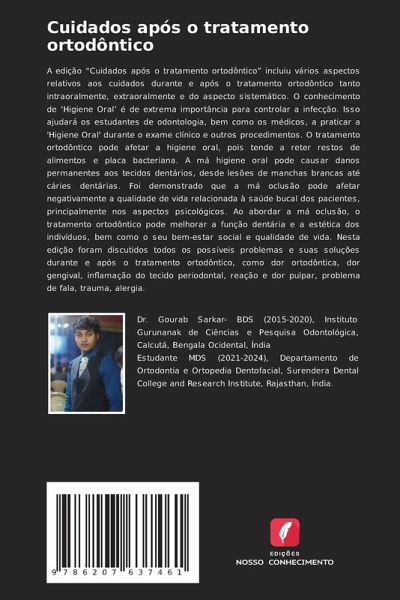 A edição "Cuidados após o tratamento ortodôntico" incluiu vários aspectos relativos aos cuidados durante e após o tratamento ortodôntico tanto intraoralmente, extraoralmente e do aspecto sistemático. O conhecimento de 'Higiene Oral' é de extrema importância para controlar a infecção. Isso ajudará os estudantes de odontologia, bem como os médicos, a praticar a 'Higiene Oral' durante o exame clínico e outros procedimentos. O tratamento ortodôntico pode afetar a higiene oral, pois tende a reter restos de alimentos e placa bacteriana. A má higiene oral pode causar danos permanentes aos tecidos dentários, desde lesões de manchas brancas até cáries dentárias. Foi demonstrado que a má oclusão pode afetar negativamente a qualidade de vida relacionada à saúde bucal dos pacientes, principalmente nos aspectos psicológicos. Ao abordar a má oclusão, o tratamento ortodôntico pode melhorar a função dentária e a estética dos indivíduos, bem como o seu bem-estar social e qualidade de vida. Nesta edição foram discutidos todos os possíveis problemas e suas soluções durante e após o tratamento ortodôntico, como dor ortodôntica, dor gengival, inflamação do tecido periodontal, reação e dor pulpar, problema de fala, trauma, alergia.