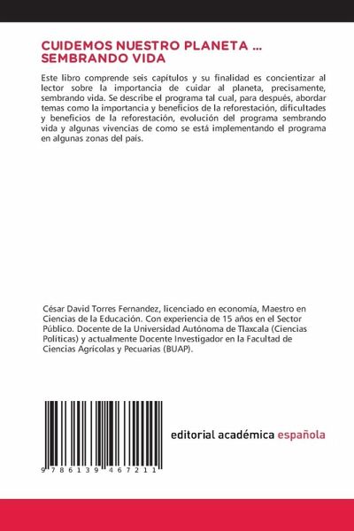 Este libro comprende seis capítulos y su finalidad es concientizar al lector sobre la importancia de cuidar al planeta, precisamente, sembrando vida. Se describe el programa tal cual, para después, abordar temas como la importancia y beneficios de la reforestación, dificultades y beneficios de la reforestación, evolución del programa sembrando vida y algunas vivencias de como se está implementando el programa en algunas zonas del país.