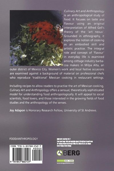 Culinary Art and Anthropology is an anthropological study of food. It focuses on taste and flavour using an original interpretation of Alfred Gell's theory of the 'art nexus'. Grounded in ethnography, it explores the notion of cooking as an embodied skill and artistic practice. The integral role and concept of 'flavour' in everyday life is examined among cottage industry barbacoa makers in Milpa Alta, an outer district of Mexico City. Women's work and local festive occasions are examined against a background of material on professional chefs who reproduce 'traditional' Mexican cooking in restaurant settings. Including recipes to allow readers to practise the art of Mexican cooking, Culinary Art and Anthropology offers a sensual, theoretically sophisticated model for understanding food anthropologically. It will appeal to social scientists, food lovers, and those interested in the growing fields of food studies and the anthropology of the senses.
