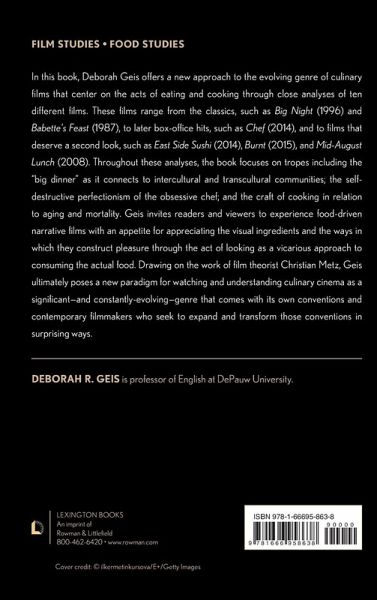 In this book, Deborah Geis offers a new approach to the evolving genre of culinary films that center on the acts of eating and cooking through close analyses of ten different films. These films range from the classics, like Big Night (1996) and Babette's Feast (1987) to later box-office hits, like Chef (2014) and to films that deserve a second look, like East Side Sushi (2014), Burnt (2015), and Mid-August Lunch (2008). Throughout these analyses, the book focuses on tropes including the "big dinner" as it connects to intercultural and transcultural communities; the self-destructive perfectionism of the obsessive chef; and the craft of cooking in relation to aging and mortality. Geis invites readers and viewers to experience food-driven narrative films with an appetite for appreciating the visual ingredients and the ways in which they construct pleasure through the act of looking as a vicarious approach to consuming the actual food. Drawing on the work of film theorist Christian Metz, Geis ultimately poses a new paradigm for watching and understanding culinary cinema as a significant - and constantly-evolving - genre that comes with its own conventions and contemporary filmmakers who seek to expand and transform those conventions in surprising ways.
