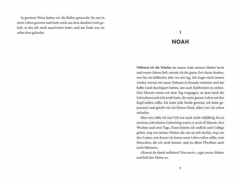Noah hat auch keine einfache Vergangenheit gehabt, denn ihr Vater war nach einem Unfall zum Trinker geworden. Mit Gewalt, Drogen und Wut kann und will sie nicht umgehen.
