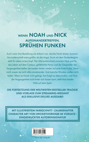 Als Noah sich in Nick verliebt hat, war klar, dass ihre Beziehung nicht einfach werden würde. Sie sind Feuer und Elektrizität, wenn sie aufeinandertreffen, sprühen Funken - in jeder Hinsicht. Nach dem letzten Sommer dachte Noah, ihre Leidenschaft wäre größer als die Angst. Doch mit dem Studienbeginn steht ihr Leben erneut kopf. Der Altersunterschied zwischen Nick und Noah, das Leben auf dem Campus, gefährliche Partys und die Gespenster der Vergangenheit stellen die beiden immer wieder auf eine harte Probe. Denn noch wissen sie nicht alles voneinander. Und sosehr sie sich bemühen, manche Wunden heilen nicht. Wenn es Noah nicht gelingt, ihre Angst zu überwinden, und Nick die Vergangenheit nicht hinter sich lassen kann, steht ihrer beider Welt auf dem Spiel.