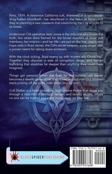Paris, 1974. A notorious California cult, shattered in a spectacular drug-fueled bloodbath, has resurfaced in the heart of Paris-and they're planning a new massacre that could bring the City of Light to its knees. Undercover CIA operative Jean Jones is the only one who knows the truth, but when she's framed for the brutal murders of three cult members, her mission-and her life-are put on the line. Jean's only hope rests in Brad James, the CIA's secret weapon, a pop singer with a proven talent for taking down evildoers. With the clock ticking, Brad teams up with trusted ally Chuck Hall. Together they discover a web of corruption, drugs, and human trafficking that stretches far deeper than anything they could have imagined. Things get personal when the hunt for the ruthless cult leader becomes a deadly game of cat and mouse and a mysterious assassin starts picking off the cult's inner circle, one by one. Cult Stalker is a heart-pounding, high-octane thriller that drags you through a labyrinth of betrayal, danger, and deadly secrets, where no one can be trusted and every move could be your last.
