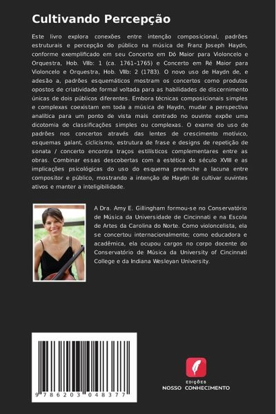 Este livro explora conexões entre intenção composicional, padrões estruturais e percepção do público na música de Franz Joseph Haydn, conforme exemplificado em seu Concerto em Dó Maior para Violoncelo e Orquestra, Hob. VIIb: 1 (ca. 1761¿1765) e Concerto em Ré Maior para Violoncelo e Orquestra, Hob. VIIb: 2 (1783). O novo uso de Haydn de, e adesão a, padrões esquemáticos mostram os concertos como produtos opostos de criatividade formal voltada para as habilidades de discernimento únicas de dois públicos diferentes. Embora técnicas composicionais simples e complexas coexistam em toda a música de Haydn, mudar a perspectiva analítica para um ponto de vista mais centrado no ouvinte expõe uma dicotomia de classificações simples ou complexas. O exame do uso de padrões nos concertos através das lentes de crescimento motívico, esquemas galant, ciclicismo, estrutura de frase e designs de repetição de sonata / concerto encontra traços estilísticos complementares entre as obras. Combinar essas descobertas com a estética do século XVIII e as implicações psicológicas do uso do esquema preenche a lacuna entre compositor e público, mostrando a intenção de Haydn de cultivar ouvintes ativos e manter a inteligibilidade.