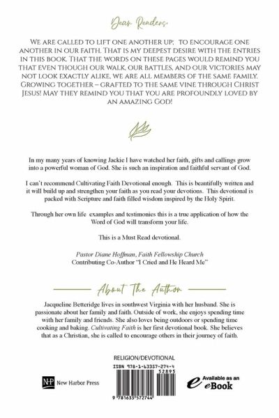 Dear Readers, We are called to lift one another up; to encourage one another in our faith. That is my deepest desire with the entries in this book. That the words on these pages would remind you that even though our walk, our battles, and our victories may not look exactly alike, we are all members of the same family. Growing together - grafted to the same vine through Christ Jesus! May they remind you that you are profoundly loved by an amazing God!