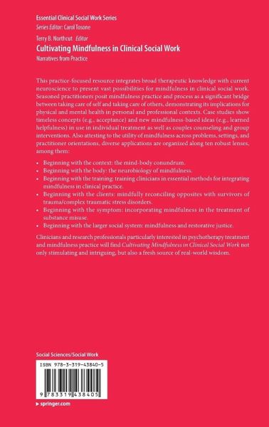 What it Means to Include Mindfulness in our Concept of Mental Health Assistance.- Mindfully Disconnecting - The Timeliness of the Addition of Mindfulness to our Understanding of Clinical Work.- The Legacy and Richness of Heritage.- Understanding the Context of the Body and the Brain in Mindfulness.- Mind the Gap: to Meditate or not to Meditate.- Understanding the Context of the Body and the Brain in Mindfulness.- Beginning Where the Clinician is: Guided Mindfulness Meditation for Social Work Clinicians.- Training Clinicians in Essential Methods for Integrating Mindfulness in Clinical Practice.- Meditative Dialogue: Helping Couples to Develop Compassion and Empathy for Themselves and for Each Other.- Mindfulness in the Treatment of Addictions in Adolescent High-risk Youth .- Mindfulness Based Cognitive Therapy for the Treatment of Affective Disorders. - Mindfulness with Survivors of Trauma/Complex Traumatic Stress Disorders.- Mindfulness and Restorative Justice.- Conclusion.