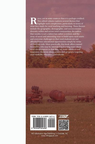 Rural life is more complex than it is perhaps credited. This edited volume explores several themes that highlight such complexities, particularly in terms of what they imply for rural teaching and learning. These themes include the geographic, demographic, and socioeconomic diversity within and across rural communities; the notion that rurality is not a deficit but rather a context; and the array of novel and interesting ways to build upon rural assets and overcome challenges so that rural students are not afforded fewer educational opportunities simply by virtue of their zip code. More practically, this book offers counsel for readers who may be interested in learning more about rural circumstances so that they can make informed and responsive decisions about policies and programs targeting rural students, educators, and schools.