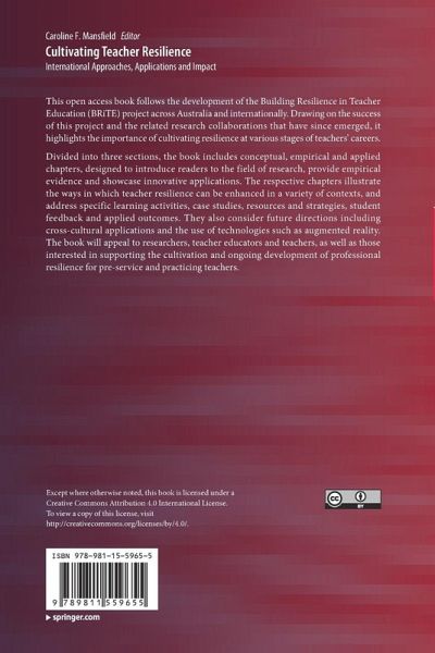 This open access book follows the development of the Building Resilience in Teacher Education (BRiTE) project across Australia and internationally. Drawing on the success of this project and the related research collaborations that have since emerged, it highlights the importance of cultivating resilience at various stages of teachers' careers. Divided into three sections, the book includes conceptual, empirical and applied chapters, designed to introduce readers to the field of research, provide empirical evidence and showcase innovative applications. The respective chapters illustrate the ways in which teacher resilience can be enhanced in a variety of contexts, and address specific learning activities, case studies, resources and strategies, student feedback and applied outcomes. They also consider future directions including cross-cultural applications and the use of technologies such as augmented reality. The book will appeal to researchers, teacher educators and teachers, as well as those interested in supporting the cultivation and ongoing development of professional resilience for pre-service and practicing teachers.