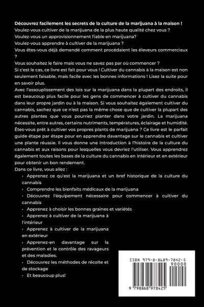 Souhaitez-vous cultiver vos propres plants de marijuana mais ne savez pas par où commencer ? Si la réponse est oui, vous êtes exactement au bon endroit en ce moment. Vous pourriez hésiter parce que vous avez toujours tendance à tuer cette plante d'intérieur que vous avez achetée, ou que vous n'avez jamais vraiment mis les mains dans la terre. Que vous ayez déjà cultivé vos propres plantes auparavant ou que vous manquiez de main verte, ce guide vous aidera à faire pousser bientôt vos propres plants de marijuana en bonne santé. Une fois que vous serez équipé des informations fournies dans ce livre et que vous y aurez investi un peu de temps et d'efforts, vous serez en mesure de cultiver également une bonne marijuana. Vous apprendrez bientôt comment cultiver un produit supérieur bien meilleur que la plupart de ce qui est disponible. Si vous voulez faire pousser des bourgeons végétaliens ou si vous cherchez simplement à cultiver de la marijuana biologique, vous pouvez tout essayer. Si vous examinez de nombreuses études, vous constaterez que la plupart de la marijuana cultivée commercialement contient des traces de pesticides et d'autres produits chimiques nocifs. Beaucoup des variétés ne sont pas séchées et curées correctement et sont rarement bien purgées également. La manière dont les plantes sont cultivées, quand elles sont récoltées, etc., affectera la qualité de la marijuana. Lorsque vous apprendrez à la cultiver vous-même, vous aurez le contrôle sur tous ces facteurs. Cela est particulièrement important pour les patients utilisant la marijuana à des fins médicales. Cultiver une bonne marijuana vous aidera à obtenir les avantages les plus efficaces. "La Culture de la Marijuana pour les Débutants" est un guide complet sur ce qu'est la marijuana et l'ensemble du processus de culture de la marijuana avec des instructions détaillées. Vous apprendrez tout sur ce que cette plante nécessite pour bien pousser et comment vous pouvez le faire avec succès en évitant la plupart des erreurs de débutant. Avec le temps et l'expérience, vous développerez votre propre approche unique de la culture de la marijuana. Cela peut même être très amusant. D'ici là, vous pouvez utiliser ce guide et tirer des enseignements des expériences et de l'expertise des autres.