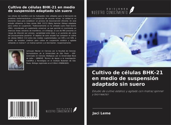 Las células de mamífero son los huéspedes más utilizados para la fabricación de proteínas biofarmacéuticas y la producción de vacunas víricas. La calidad es un elemento clave para establecer un proceso de bioconversión eficiente. En este estudio utilizamos la línea celular BHK- 21C13 (Baby Hamster Kidney) adaptada para cultivo en suspensión. Tradicionalmente se ha utilizado suero fetal bovino (FBS), considerado un suplemento universal, ya que permite el crecimiento en diversas líneas celulares de mamíferos; sin embargo, el uso de FBS presenta un riesgo de infección por priones, variabilidad entre lotes y un aumento del coste del procesamiento posterior. El objetivo de este estudio fue comparar el cultivo de células BHK-21 C13 entre dos medios suplementados con SFB y sin SFB, a través de estudios cinéticos para cultivo en suspensión estática y agitada utilizando un matraz T, un matraz spinner y un biorreactor, respectivamente.