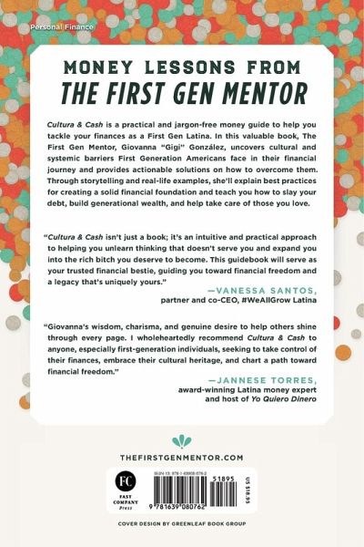 Money Lessons from the First Gen Mentor Cultura and Cash is a practical and jargon-free money guide to help you tackle your finances as a First Gen Latina. In this valuable book, The First Gen Mentor, Giovanna "Gigi" González, uncovers cultural and systemic barriers First Gen face in their financial journey and provides actionable solutions on how to overcome them. Through storytelling and real-life examples, she'll go into depth and explain best practices for creating a solid financial foundation through emergency funds, credit building, budgeting, debt payoff, and investing. This book will improve your money mindset and give you the information you need to create financial success on your terms with family in mind. You will learn how to balance family expectations while prioritizing your own financial wellness and that money does not control you and limit you. Instead, it's a powerful self-care tool you use to your advantage to support you and those you care about. Read this book and you will be empowered to take action and start designing a life you love.