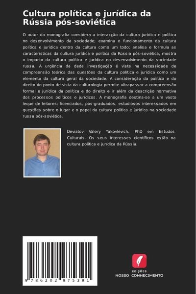 O autor da monografia considera a interacção da cultura jurídica e política no desenvolvimento da sociedade; examina o funcionamento da cultura política e jurídica dentro da cultura como um todo; analisa e formula as características da cultura jurídica e política da Rússia pós-soviética, mostra o impacto da cultura política e jurídica no desenvolvimento da sociedade russa. A urgência da dada investigação é vista na necessidade de compreensão teórica das questões da cultura política e jurídica como um elemento da cultura geral da sociedade. A consideração da política e do direito do ponto de vista da culturologia permite ultrapassar a compreensão formal e jurídica da política e do direito e ir além da descrição normativa dos processos políticos e jurídicos. A monografia destina-se a um vasto leque de leitores: licenciados, pós-graduados, estudiosos interessados em questões sobre o lugar e o papel da cultura política e jurídica na sociedade russa pós-soviética.