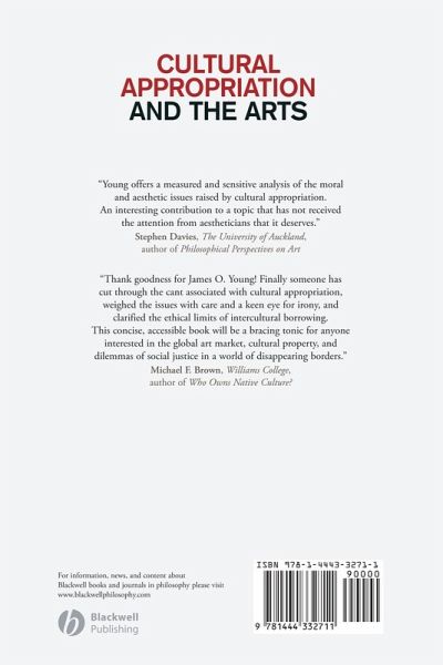"Cultural Appropriation and the Arts, by James O. Young,provides an analytical, comprehensive overview of ethical andaesthetic issues concerning cultural appropriation." (Journal of Cult Economy, 25 March 2011)